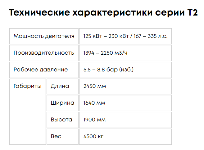 Поскольку турбокомпрессоры СЕРИИ T2 спроектированы как максимально компактное и простое в обслуживании оборудование, то в сравнении с турбокомпрессорами других производителей и винтовыми компрессорами, их эксплуатация позволяет значительно сокращать затраты на техническое облуживание.
