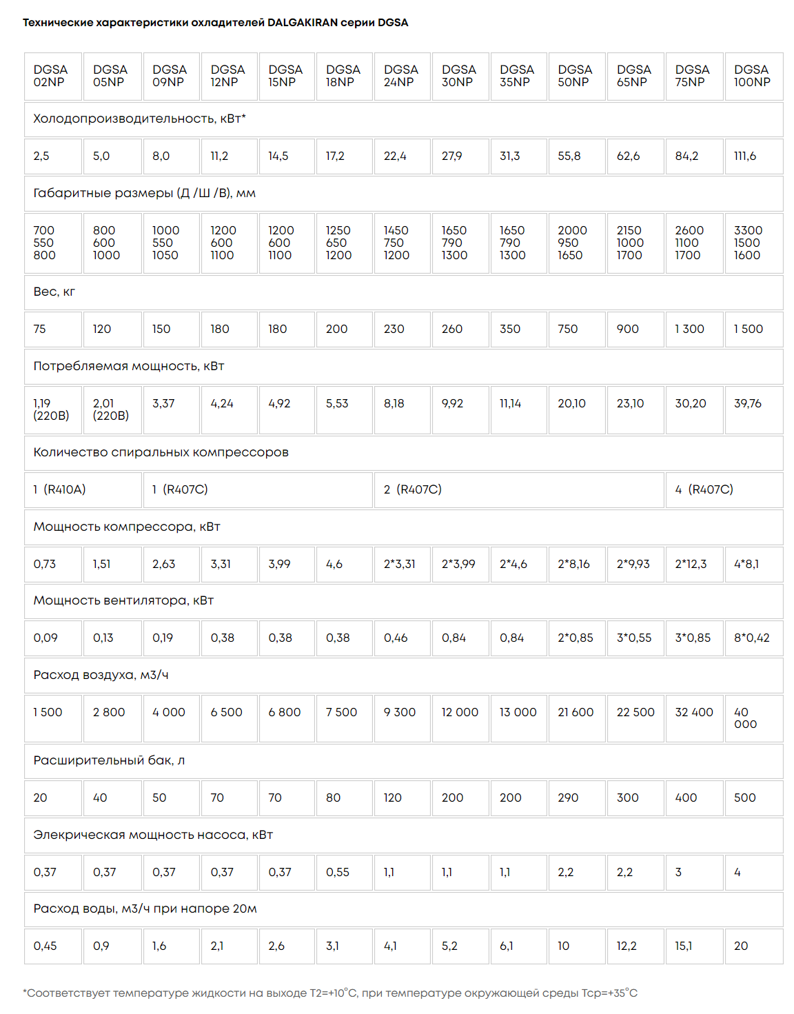Холодопроизводительность установок DALGAKIRAN серии DGSA - от 2,6 кВт до 168 кВт, температура на выходе охлажденной воды - от +5℃ до +20℃. Многофункциональная защита обеспечивает точный контроль, высокую надежность и лучшую производительность.