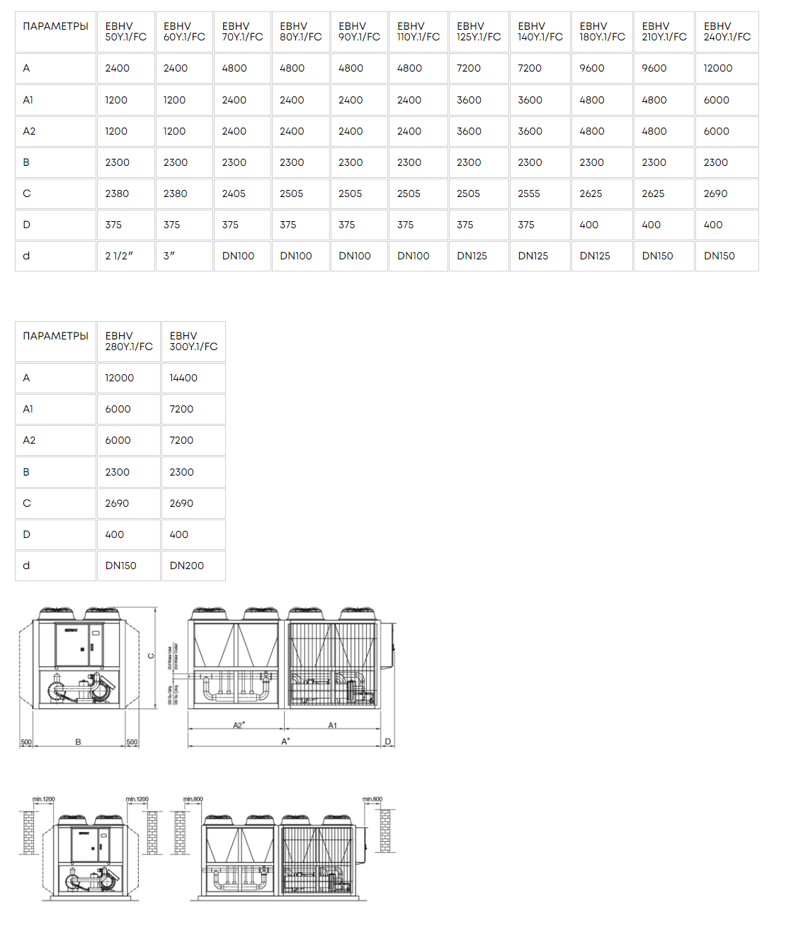 Мощность холодильных машин представлена в модельном ряде от 124,1 кВт до 962,0 кВт.