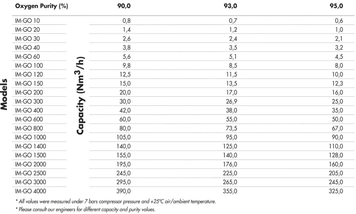 Станции по производству газообразного кислорода на основе генераторов IDEAL MAKINA используют технологию PSA (Pressure Swing Adsorption – адсорбция при переменном давлении). 21 модель генераторов стандартного модельного ряда имеет диапазон производительности от 0,6 до 390 кубических метров кислорода в час с заданной концентрацией 90-95%. Благодаря используемой технологии данные станции способны производить кислород в "полевых" условиях из окружающего атмосферного воздуха в режиме 24/7.