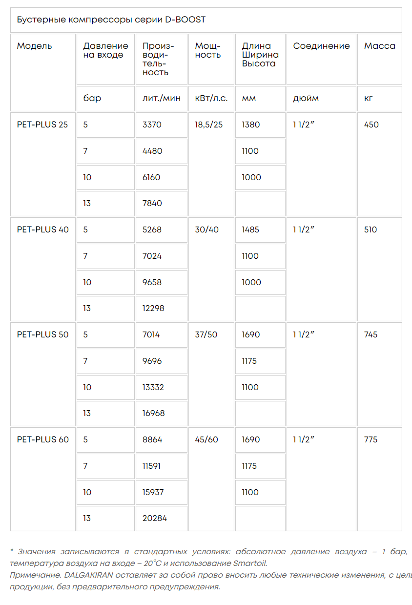 Compania DALGAKIRAN este un producător de o gamă largă de compresoare de rapel cu piston, oferă cele mai optime soluții pentru producătorii de ambalaje PET. Compresoarele de rapel din seria PET-PLUS sunt utilizate pentru a stoarce presiunea de la 5/7/10/13 la 40 Bar provenind de la compresoarele cu șurub rotativ.