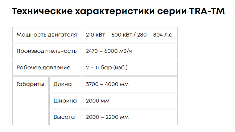 Seria TRA-TM se caracterizează prin economii de energie și spațiu, costuri de operare reduse și avantaje tehnologice în comparație cu alte turbocompresoare.