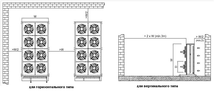 Draycooler este proiectat pentru instalare în exterior. În funcție de putere și design, ventilatoarele pot fi aranjate într-un rând separat de la 1 la 6 buc. sau în două rânduri de la 2 la 12 buc.