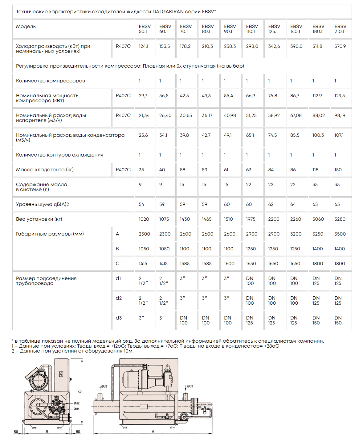 Răcitoarele DALGAKIRAN din seria EBSV sunt mașini frigorifice cu freon cu un condensator răcit cu apă, cu o capacitate de răcire de la 120 la 1800 kW.