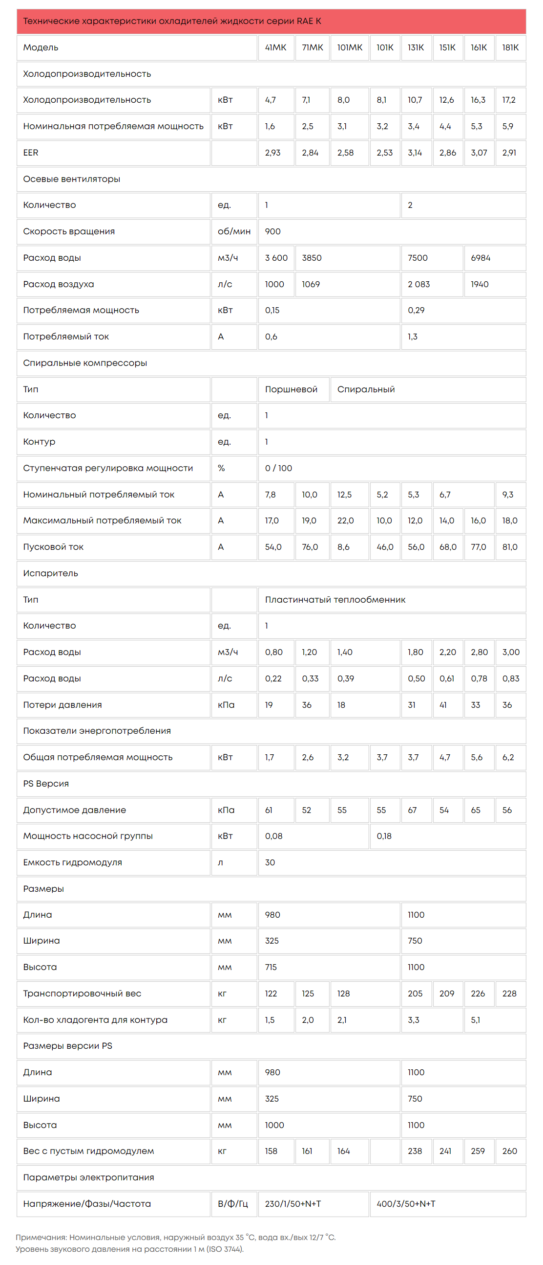 Versiuni posibile: • RAE...K versiunea standard • Flux de aer orizontal pentru modele de la 41M la 101 • Flux de aer Vertical pentru modelele de la 131 la 181 • RAE...PSK - cu un modul de ghidare